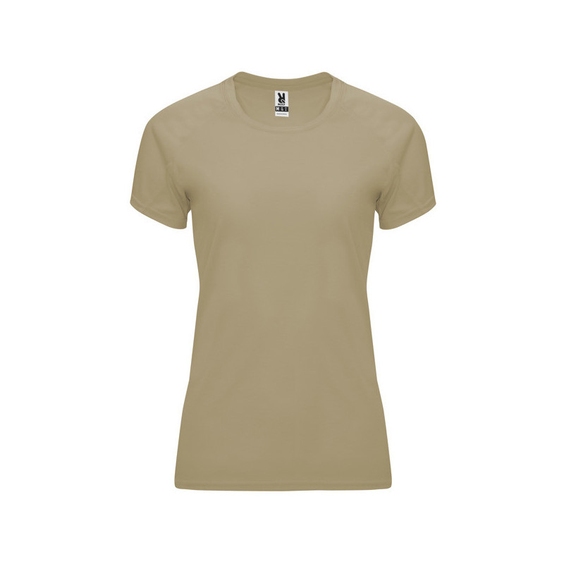 Camiseta técnica entallada de manga corta ranglán para mujer, con cuello redondo y cubrecosturas a tono. Paneles inferiores en mangas. Remallado a tono en sisa y panel de manga. Tejido CONTROL DRY. Material: 100% poliéster, waffle interlock, 135 g/m². * Certificado UV801