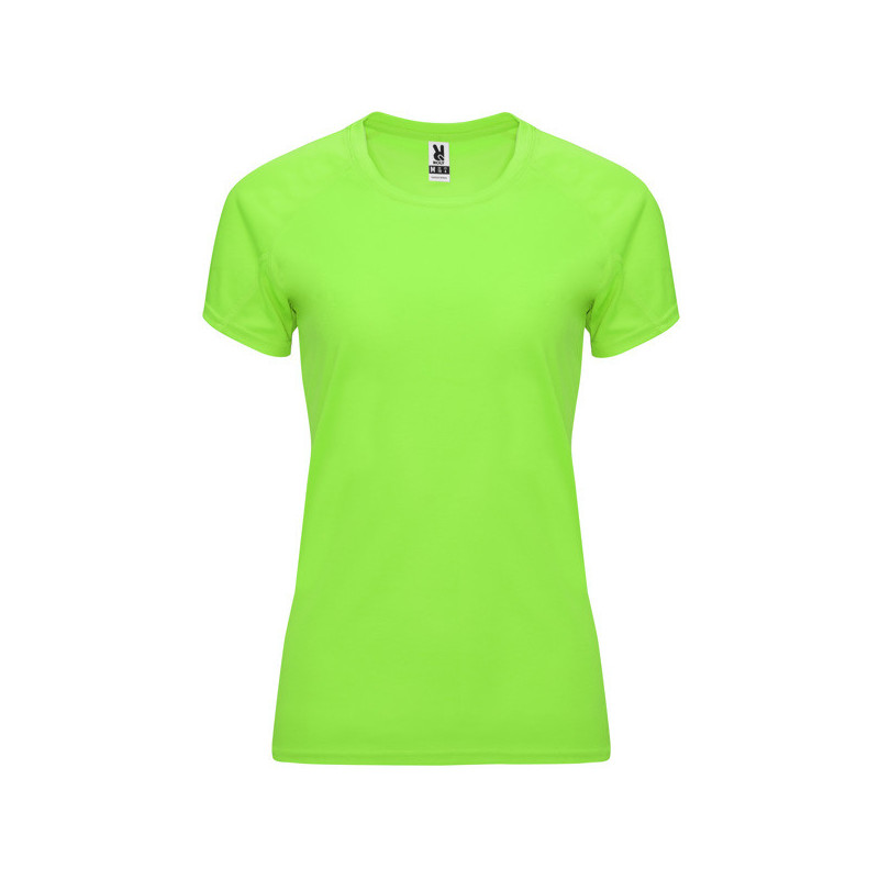 Camiseta técnica entallada de manga corta ranglán para mujer, con cuello redondo y cubrecosturas a tono. Paneles inferiores en mangas. Remallado a tono en sisa y panel de manga. Tejido CONTROL DRY. Material: 100% poliéster, waffle interlock, 135 g/m². * Certificado UV801