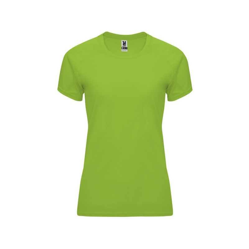 Camiseta técnica entallada de manga corta ranglán para mujer, con cuello redondo y cubrecosturas a tono. Paneles inferiores en mangas. Remallado a tono en sisa y panel de manga. Tejido CONTROL DRY. Material: 100% poliéster, waffle interlock, 135 g/m². * Certificado UV801