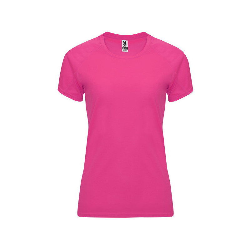 Camiseta técnica entallada de manga corta ranglán para mujer, con cuello redondo y cubrecosturas a tono. Paneles inferiores en mangas. Remallado a tono en sisa y panel de manga. Tejido CONTROL DRY. Material: 100% poliéster, waffle interlock, 135 g/m². * Certificado UV801