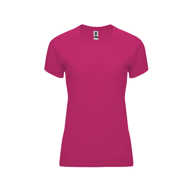 Camiseta técnica entallada de manga corta ranglán para mujer, con cuello redondo y cubrecosturas a tono. Paneles inferiores en mangas. Remallado a tono en sisa y panel de manga. Tejido CONTROL DRY. Material: 100% poliéster, waffle interlock, 135 g/m². * Certificado UV801