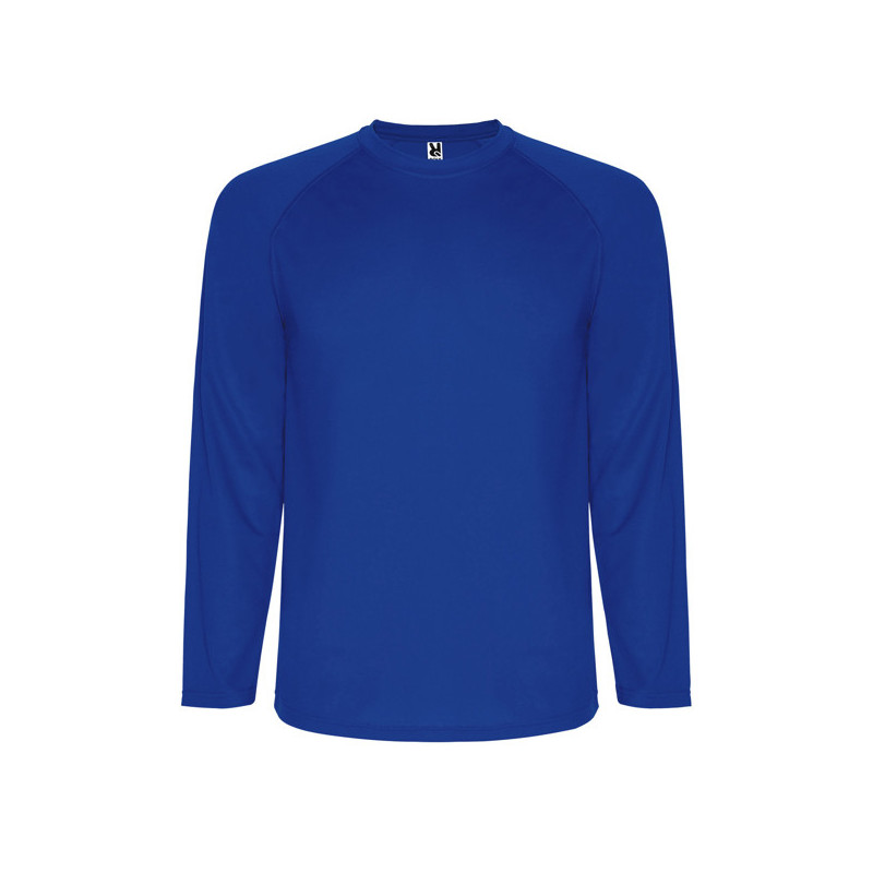 Camiseta técnica de manga larga ranglán, remallada al tono en mangas (sin cortes laterales). Cubrecosturas en cuello. Tejido transpirable de fácil lavado y secado. Material: 100% poliéster piqué, 150 g/m² *Certificado UV801