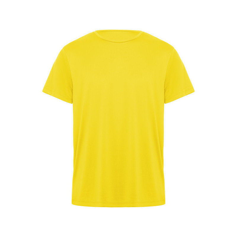 Camiseta técnica de manga corta traspirable. Cuello redondo con cubrecosturas a tono. Material: 100% poliéster interlock, 135 g/m².