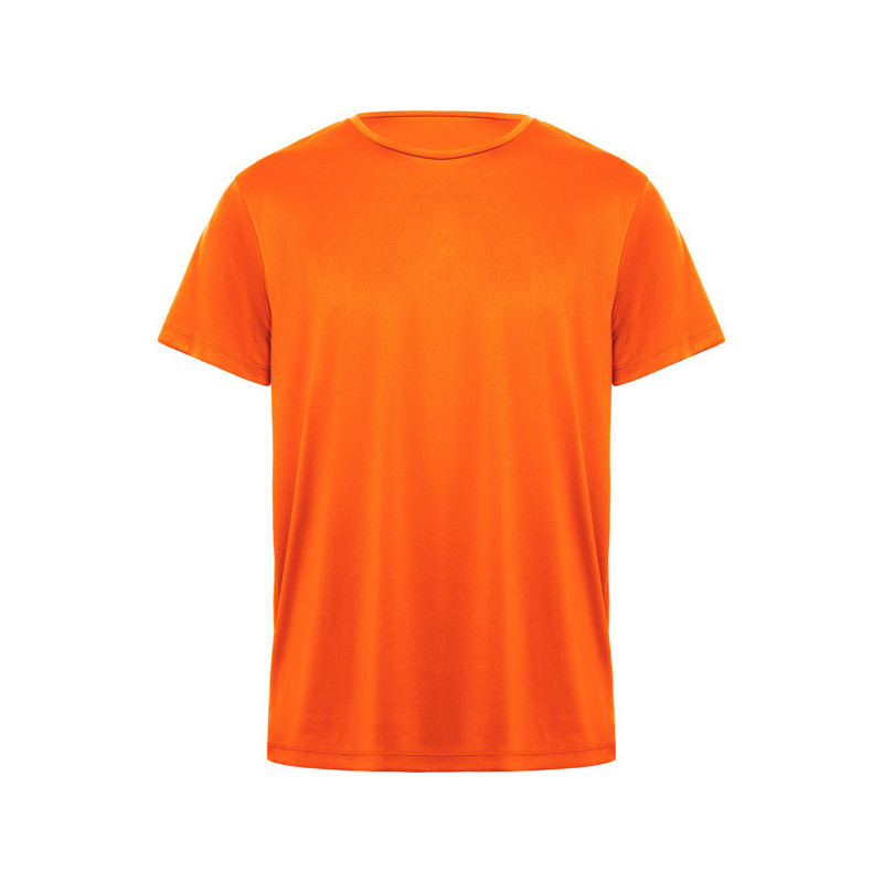 Camiseta técnica de manga corta traspirable. Cuello redondo con cubrecosturas a tono. Material: 100% poliéster interlock, 135 g/m².