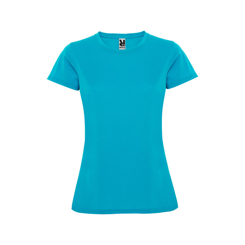 Camiseta técnica de manga corta para mujer, con cuello redondo. Combinado en espalda, hombros y mangas con dos tejidos de poliéster. Tejido principal frontal bird´s eye y tejido space dye en la parte trasera. Patronaje en la espalda ligeramente mas largo. Material: Tejido delantero: 100% poliéster bird´s eye. Tejido trasero: 100% poliéster space dye, 135 g/m². Modelo transpirable y de fácil secado.