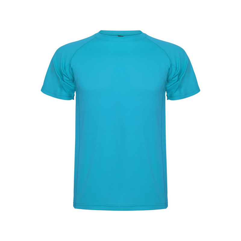 Camiseta técnica de manga corta ranglán. Escote redondeado con cubrecosturas. Cortes laterales con remallado al tono. Material: 100% poliéster piqué, 150 g/m². * Certificado UV801