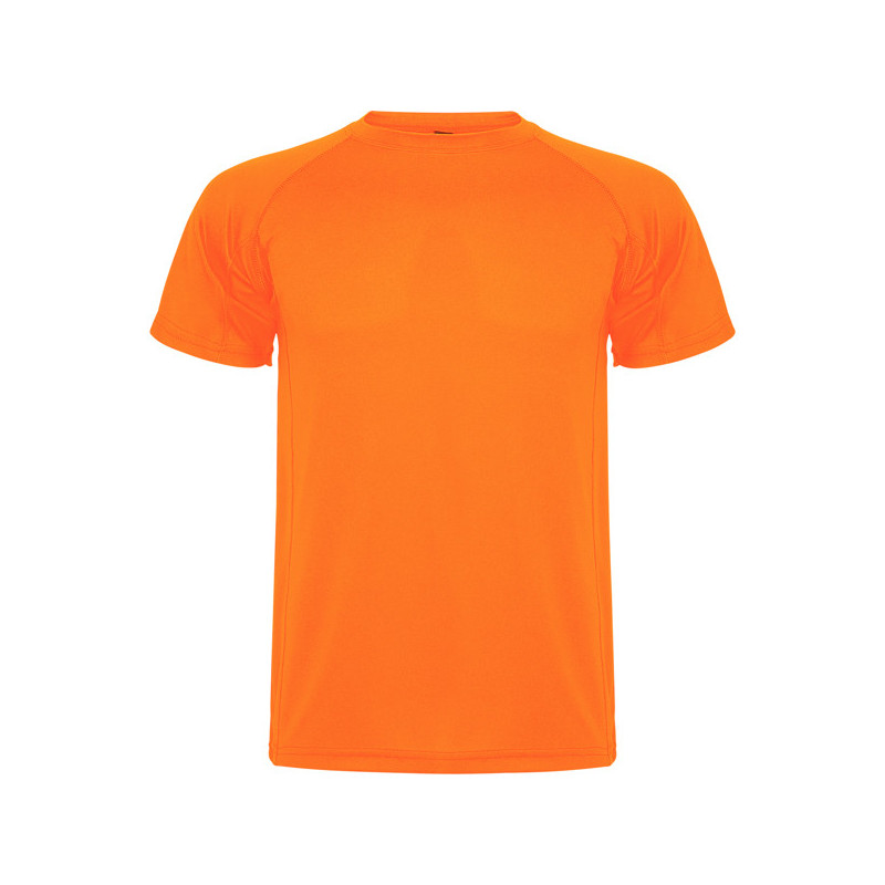 Camiseta técnica de manga corta ranglán. Escote redondeado con cubrecosturas. Cortes laterales con remallado al tono. Material: 100% poliéster piqué, 150 g/m². * Certificado UV801
