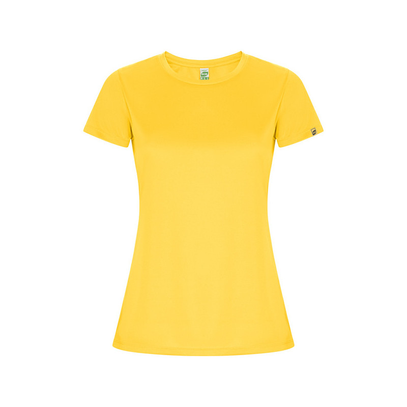 Camiseta técnica entallada de manga corta ranglán para mujer, con cuello redondo y cubrecosturas a tono. Paneles inferiores en mangas. Remallado a tono en sisa y panel de manga. Tejido CONTROL DRY. Material: 100% poliéster, waffle interlock, 135 g/m². * Certificado UV801