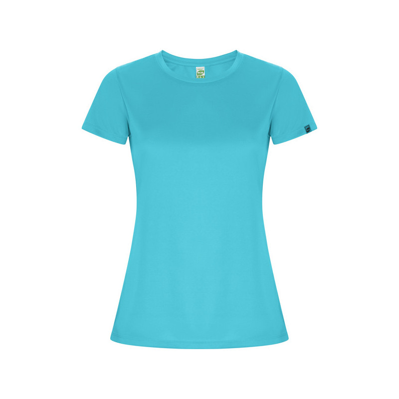 Camiseta técnica entallada de manga corta ranglán para mujer, con cuello redondo y cubrecosturas a tono. Paneles inferiores en mangas. Remallado a tono en sisa y panel de manga. Tejido CONTROL DRY. Material: 100% poliéster, waffle interlock, 135 g/m². * Certificado UV801