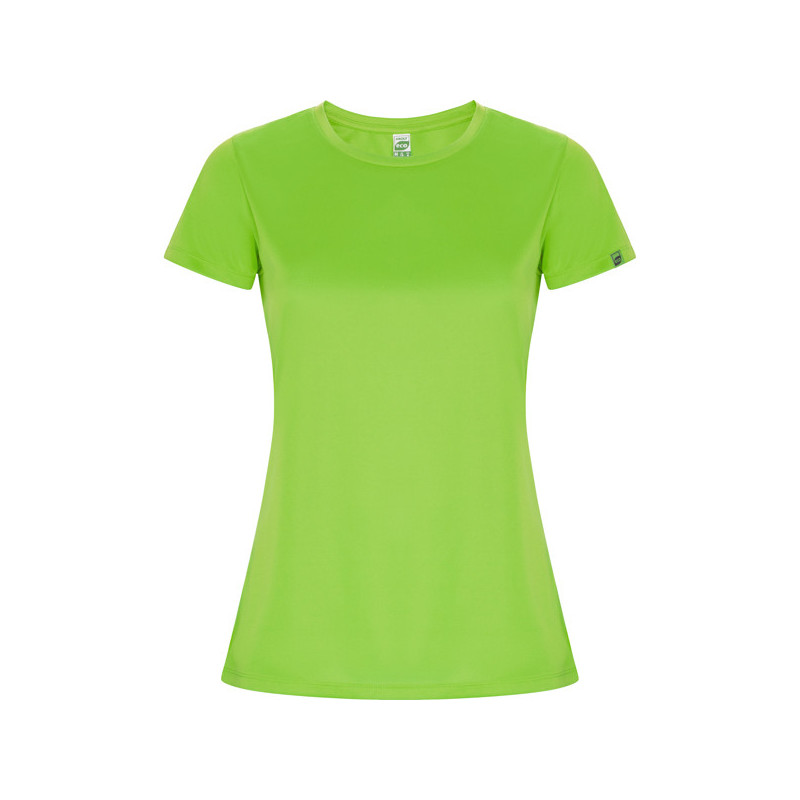 Camiseta técnica entallada de manga corta ranglán para mujer, con cuello redondo y cubrecosturas a tono. Paneles inferiores en mangas. Remallado a tono en sisa y panel de manga. Tejido CONTROL DRY. Material: 100% poliéster, waffle interlock, 135 g/m². * Certificado UV801