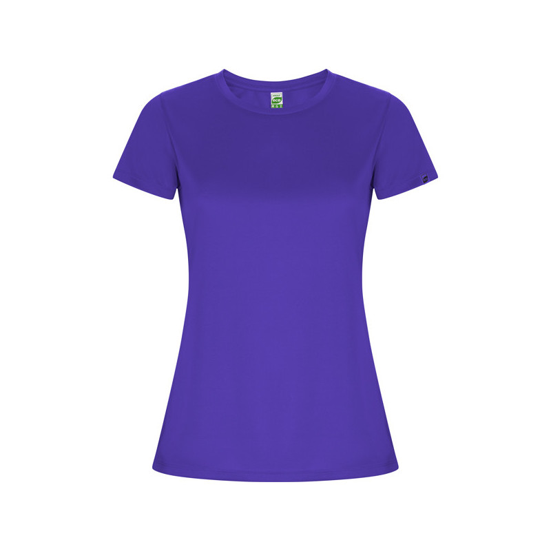 Camiseta técnica entallada de manga corta ranglán para mujer, con cuello redondo y cubrecosturas a tono. Paneles inferiores en mangas. Remallado a tono en sisa y panel de manga. Tejido CONTROL DRY. Material: 100% poliéster, waffle interlock, 135 g/m². * Certificado UV801