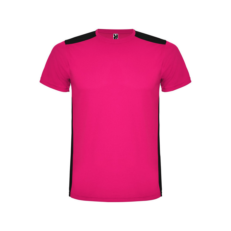 Camiseta técnica combinada con dos tejidos de poliéster, manga corta de estilo ranglán. Tejido principal bird's eye y paneles laterales e interior de la manga con tejido microperforado. Cuello redondo con cubrecosturas de refuerzo en su interior. Camiseta de tejido confortable y fácilmente adaptable al cuerpo. Material: Tejido principal: 100% poliéster bird´s eye. Paneles: 100% poliéster micro perforado. 140 g/m².
