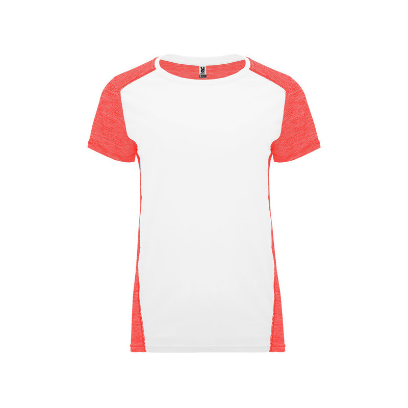 Camiseta técnica de manga corta para mujer, con cuello redondo. Combinado en espalda, hombros y mangas con dos tejidos de poliéster. Tejido principal frontal bird´s eye y tejido space dye en la parte trasera. Patronaje en la espalda ligeramente mas largo. Material: Tejido delantero: 100% poliéster bird´s eye. Tejido trasero: 100% poliéster space dye, 135 g/m². Modelo transpirable y de fácil secado.