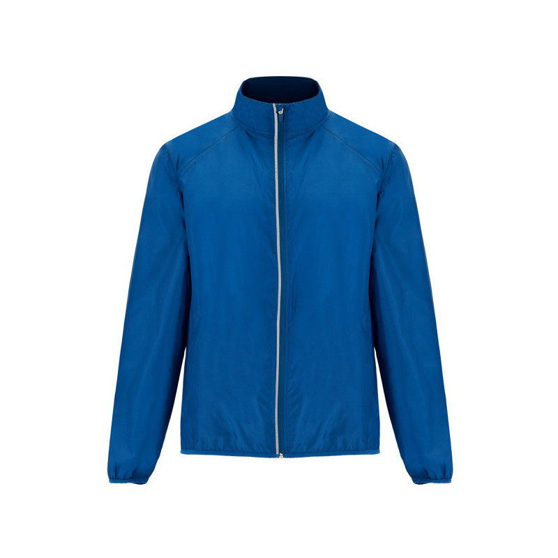 Chaqueta cortavientos en tejido técnico ligero: ·Interior de cuello forrado en tejido transpirable con cubrecosturas. ·Cremallera invertida con detalle reflectante, protector de barbilla y tirador. ·Tejido transpirable en la parte de las sisas. ·Bolsillos delanteros con cremalleras. ·Bolsillo interior para guardar la prenda. ·Puños y bajo con ribete elástico. ·Detalles reflectantes en la espalda. Material: 100% poliéster cuadrillé, 70 g/m². *Etiqueta removible. *Modelo a prueba de viento. *Modelo transpirable.