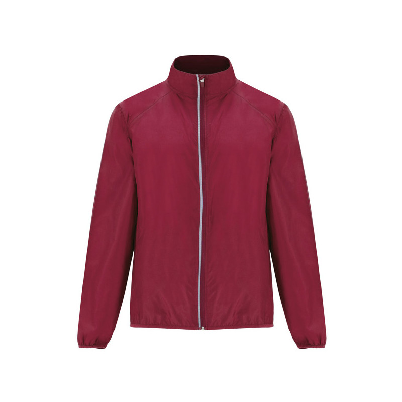 Chaqueta cortavientos en tejido técnico ligero: ·Interior de cuello forrado en tejido transpirable con cubrecosturas. ·Cremallera invertida con detalle reflectante, protector de barbilla y tirador. ·Tejido transpirable en la parte de las sisas. ·Bolsillos delanteros con cremalleras. ·Bolsillo interior para guardar la prenda. ·Puños y bajo con ribete elástico. ·Detalles reflectantes en la espalda. Material: 100% poliéster cuadrillé, 70 g/m². *Etiqueta removible. *Modelo a prueba de viento. *Modelo transpirable.