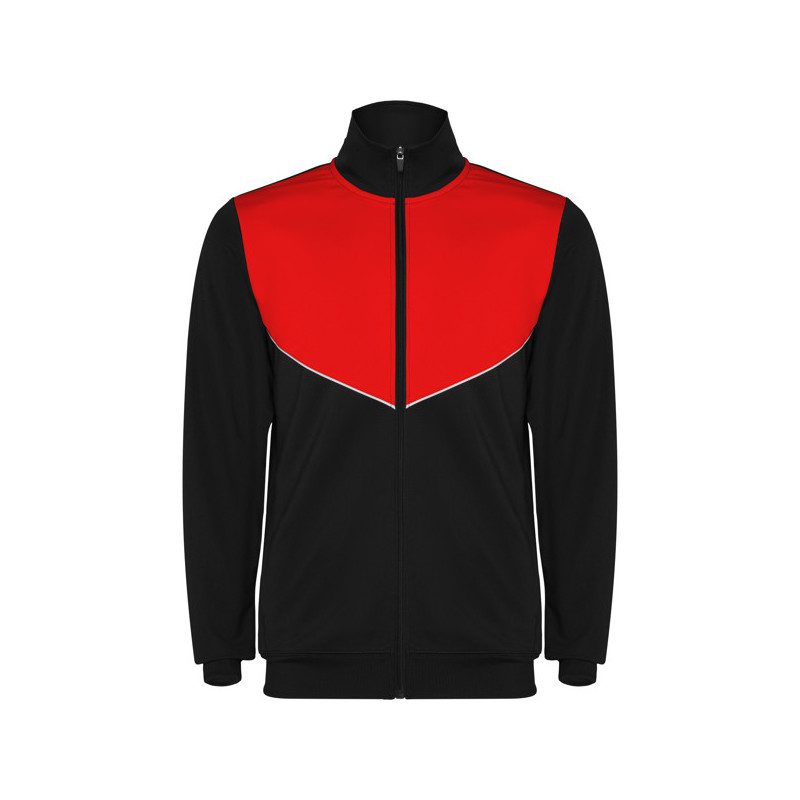 Chándal en tejido ligero y elástico. · Chaqueta con pecho a contraste de color y vivo. · Cuello alto con cubrecosturas a contraste. · Cremallera central · Bolsillos laterales. · Puños y cintura en canalé 2x2. · Pantalón con cintura elástica y cordón de ajuste. · Pieza lateral a contraste con vivo. · Bajo con cremallera. Material: 100% poliéster interlock, 225 g/m².