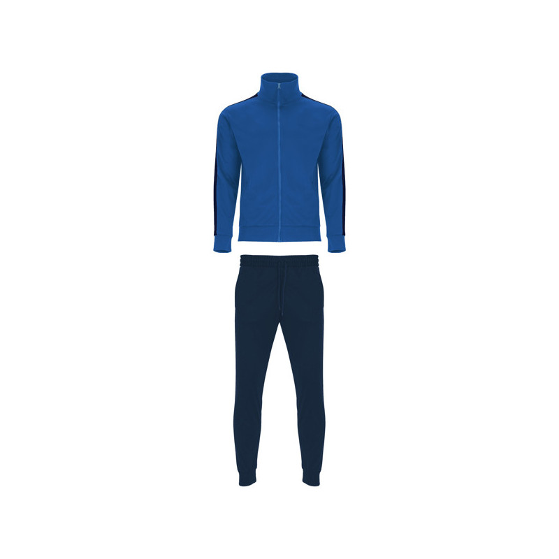Chándal en tejido ligero y elástico. · Chaqueta con pecho a contraste de color y vivo. · Cuello alto con cubrecosturas a contraste. · Cremallera central · Bolsillos laterales. · Puños y cintura en canalé 2x2. · Pantalón con cintura elástica y cordón de ajuste. · Pieza lateral a contraste con vivo. · Bajo con cremallera. Material: 100% poliéster interlock, 225 g/m².