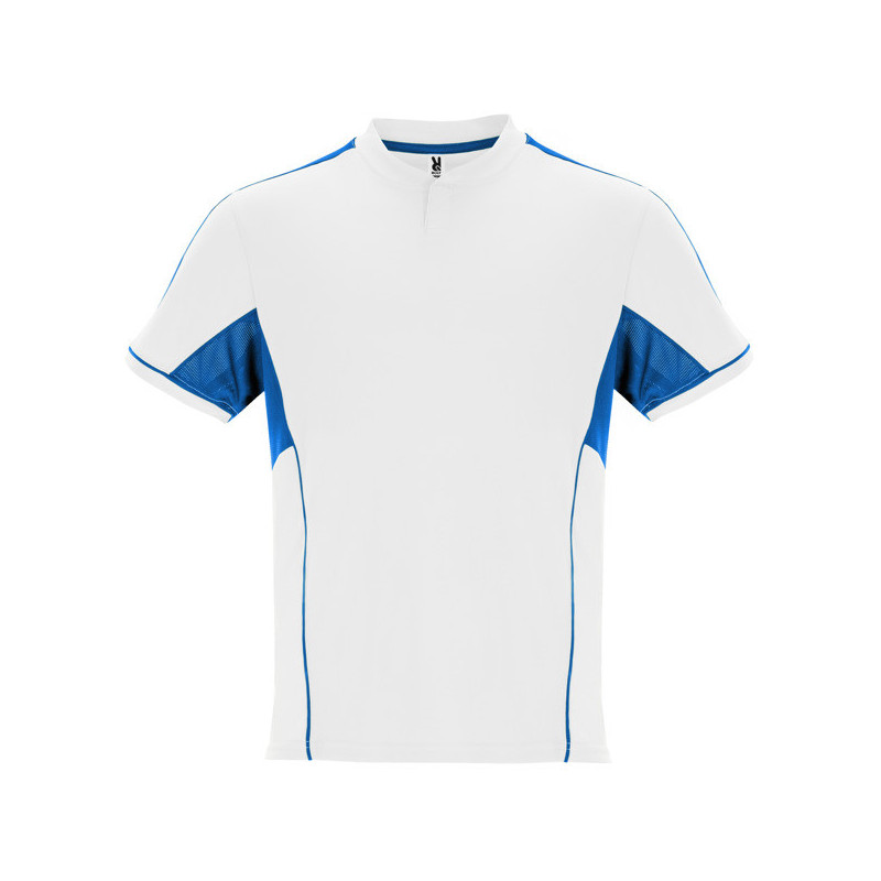 Conjunto deportivo unisex con combinación de tres tejidos: ·Camiseta con cuello mao y apertura mediante broche de presión. ·Interior de la manga en tejido transpirable. ·Paneles laterales y banda superior de manga en tejido control dry. ·Pantalón corto con cinturilla ajustable y cordones. ·Parte interior de la pierna y vivos a contraste en tejido control dry. Material: Tejido principal: 100% poliéster interlock. Paneles: 100% poliéster microperforado y 100% poliéster waffle interlock, 140 g/m².