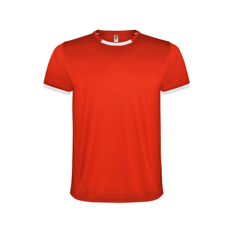 Camiseta técnica combinada con dos tejidos de poliéster, manga corta de estilo ranglán. Tejido principal bird's eye y paneles laterales e interior de la manga con tejido micro perforado. Cuello redondo con cubrecosturas de refuerzo en su interior. Camiseta de tejido confortable y fácilmente adaptable al cuerpo. Material: Tejido principal: 100% poliéster, bird's eye. Paneles: 100% poliéster microperforado. 140 g/m².