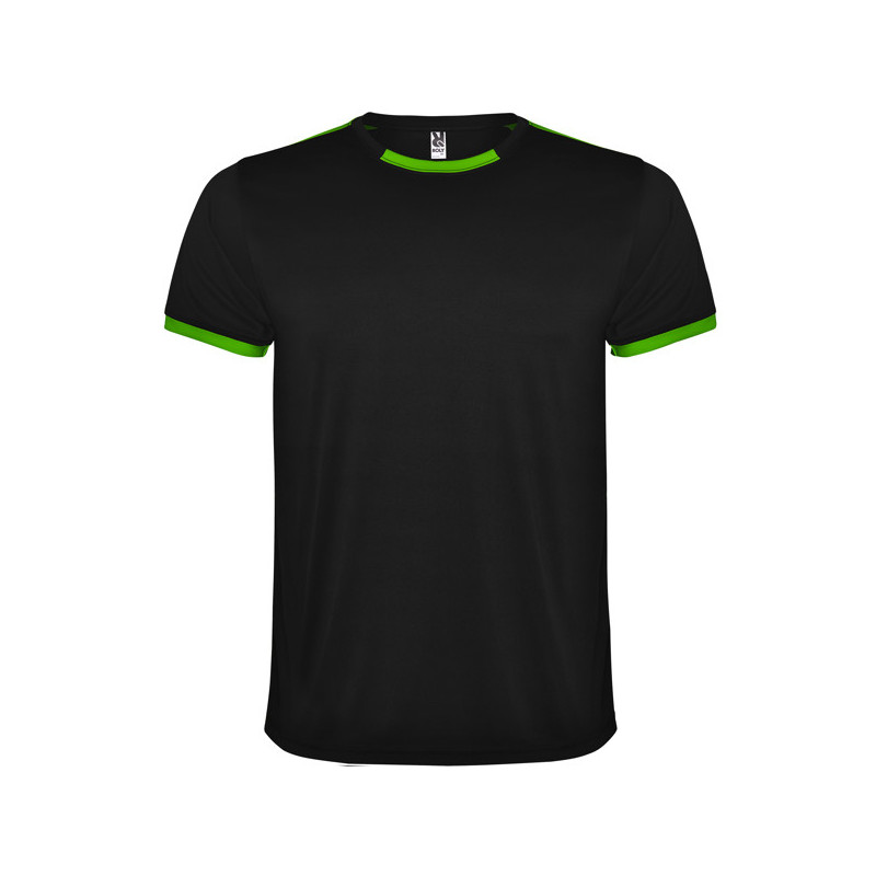 Camiseta técnica combinada con dos tejidos de poliéster, manga corta de estilo ranglán. Tejido principal bird's eye y paneles laterales e interior de la manga con tejido micro perforado. Cuello redondo con cubrecosturas de refuerzo en su interior. Camiseta de tejido confortable y fácilmente adaptable al cuerpo. Material: Tejido principal: 100% poliéster, bird's eye. Paneles: 100% poliéster microperforado. 140 g/m².