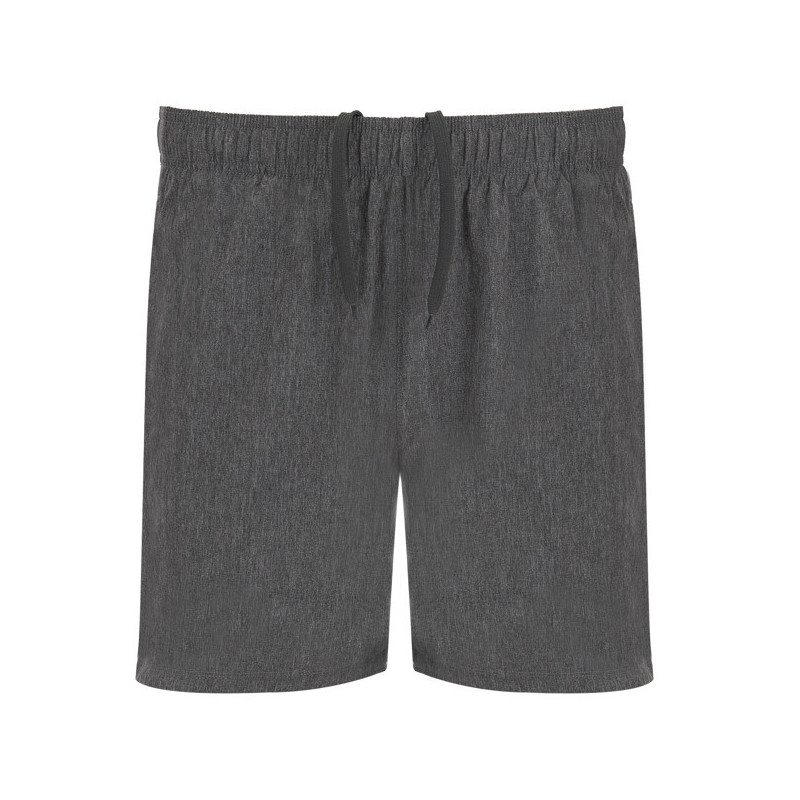 Bermuda con dos tejidos y slip interior. Cinturilla elástica con cordón interior cruzado a contraste. Banda lateral e interior de la pierna en tejido transpirable. Dos bolsillos laterales. Apertura lateral en el bajo con forma asimétrica. Material: Tejido principal: 100% poliéster microfibra, 100 g/m². Paneles: 100% Poliéster micro perforado 145g/m²