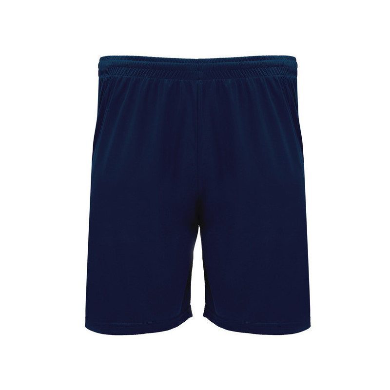 Pantalón corto con cinturilla elástica ajustable con cordón interior y pespunte de seguridad. Aperturas laterales. Material: 100% poliéster, 140 g/m².