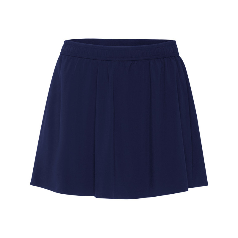 Falda técnica para mujer ligera y elástica realizada en poliéster reciclado. · Cinturilla elástica con cordones y banda elástica en parte trasera. · Malla corta interior con bolsillo en pierna izquierda. · Bajo con dobladillo termosellado. · Combinado con tejido microperforado para mejorar la transpiración. Idónea falda para practicar deportes de raqueta. Material: Falda: 90% poliéster reciclado / 10% elastano. Malla: 84% poliéster reciclado / 16% elastano. 100 g/m².