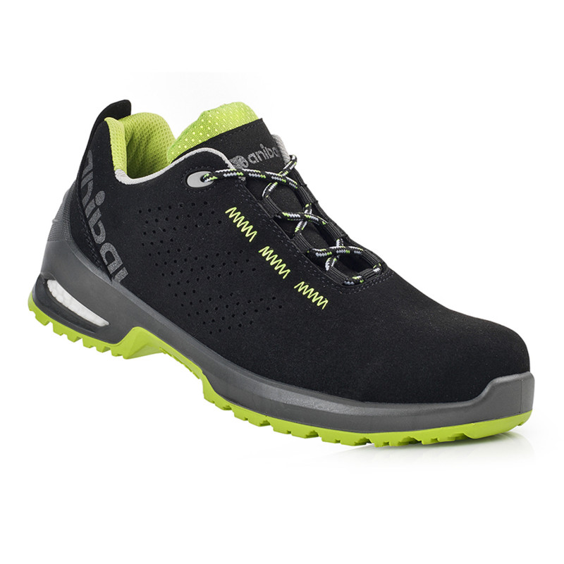 • Corte de serraje en microfibra perforada y rejilla sintética transpirable. • Tope de seguridad de fibra de vidrio. • Lámina anti-perforación Textil. • Suela PU/PU de doble densidad. • Plantilla EVA conformada. • Máximo coeficiente anti-deslizamiento SRC.