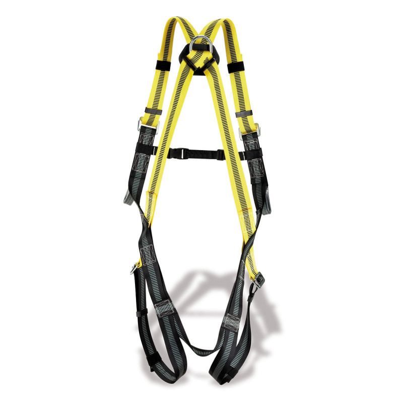Características Arnés Dieléctrico regulable con enganche dorsal y frontal. - Arnés para trabajos con riesgo eléctrico. - Hebillas de ajuste protegidas por termoplástico aislante. - Anilla dorsal eléctricamente aislante. - Cintas y costuras en poliamida especial para añadir resistencia y durabilidad.