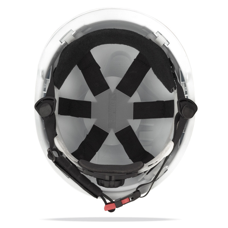 Arnés interior en plástico con 4 puntos de anclaje y banda antisudor suave.