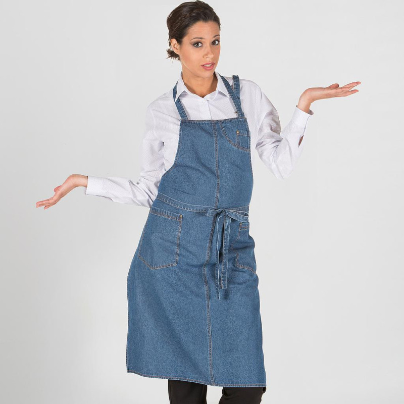 Este delantal de peto de tejano grueso (95x75 cm) combina durabilidad y estilo para profesionales. Fabricado en vaquero lavado 100% algodón, cuenta con bolsillo en el pecho y dos laterales, y cinta de cuello ajustable. Ideal para bares, restaurantes y comercios, ofrece comodidad y funcionalidad.