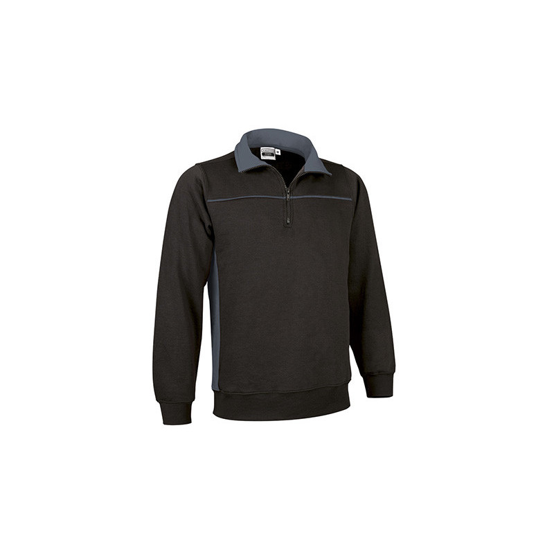 Sudadera de media cremallera y cuello alto en colores combinados · Cubre costuras reforzado en el interior del cuello. · Piezas de hombros y detalles a contraste. · Mitad del puño y bajo en punto canalé 1x1. Material: 50% algodón / 50% poliéster, felpa perchada, 280 g/m².