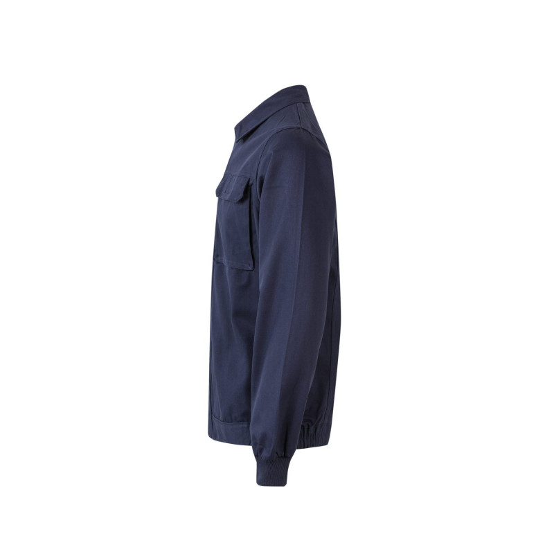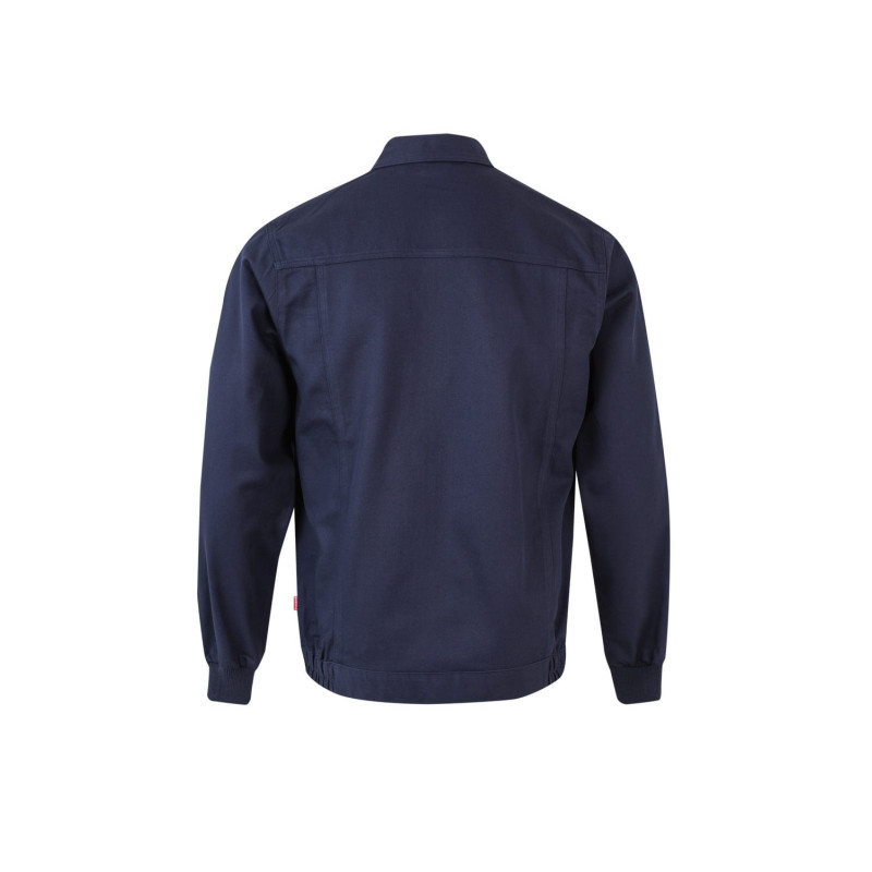 Cierre central asimétrico, con cremallera de doble cursor Manga raglán Cinturilla elástica Puños de canalé Doble costura de seguridad Cinco bolsillos: 1 bolsillo de parche en el pecho, con cremallera 2 bolsillos inferiores de parche 1 bolsillo trasero de parche 1 bolsillo para herramienta en pierna derecha COMPOSICIÓN SARGA. 65% POLIÉST 35% ALGODÓN 200 GSM
