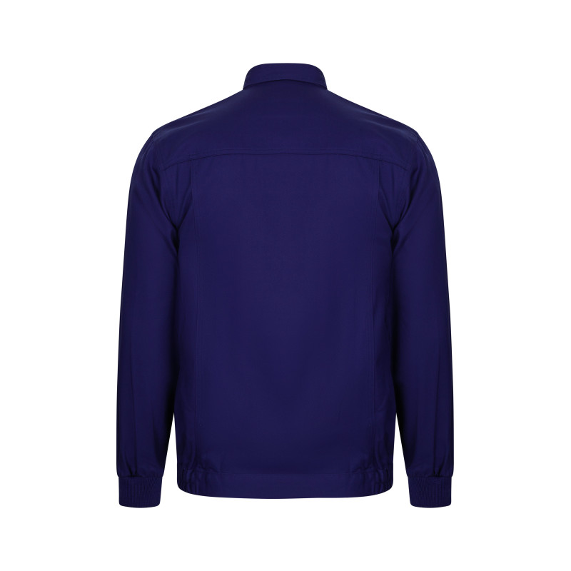 Cierre central asimétrico, con cremallera de doble cursor Manga raglán Cinturilla elástica Puños de canalé Doble costura de seguridad Cinco bolsillos: 1 bolsillo de parche en el pecho, con cremallera 2 bolsillos inferiores de parche 1 bolsillo trasero de parche 1 bolsillo para herramienta en pierna derecha COMPOSICIÓN SARGA. 65% POLIÉST 35% ALGODÓN 200 GSM