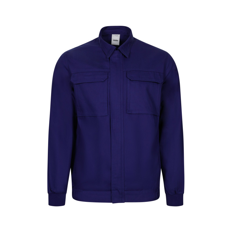 Cierre central asimétrico, con cremallera de doble cursor Manga raglán Cinturilla elástica Puños de canalé Doble costura de seguridad Cinco bolsillos: 1 bolsillo de parche en el pecho, con cremallera 2 bolsillos inferiores de parche 1 bolsillo trasero de parche 1 bolsillo para herramienta en pierna derecha COMPOSICIÓN SARGA. 65% POLIÉST 35% ALGODÓN 200 GSM