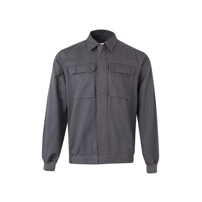 Cierre central asimétrico, con cremallera de doble cursor Manga raglán Cinturilla elástica Puños de canalé Doble costura de seguridad Cinco bolsillos: 1 bolsillo de parche en el pecho, con cremallera 2 bolsillos inferiores de parche 1 bolsillo trasero de parche 1 bolsillo para herramienta en pierna derecha COMPOSICIÓN SARGA. 65% POLIÉST 35% ALGODÓN 200 GSM