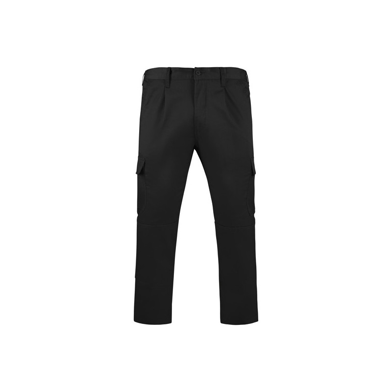 Pantalón largo laboral corte recto y tejido resistente. · Cintura ajustable elástica en parte trasera. · Dos bolsillos frontales. · Bolsillo funcional trasero con solapa y cierre velcro. · Dos bolsillos funcionales laterales con solapa y cierre velcro. · Refuerzo en entrepierna. · Doble tejido en rodilleras.