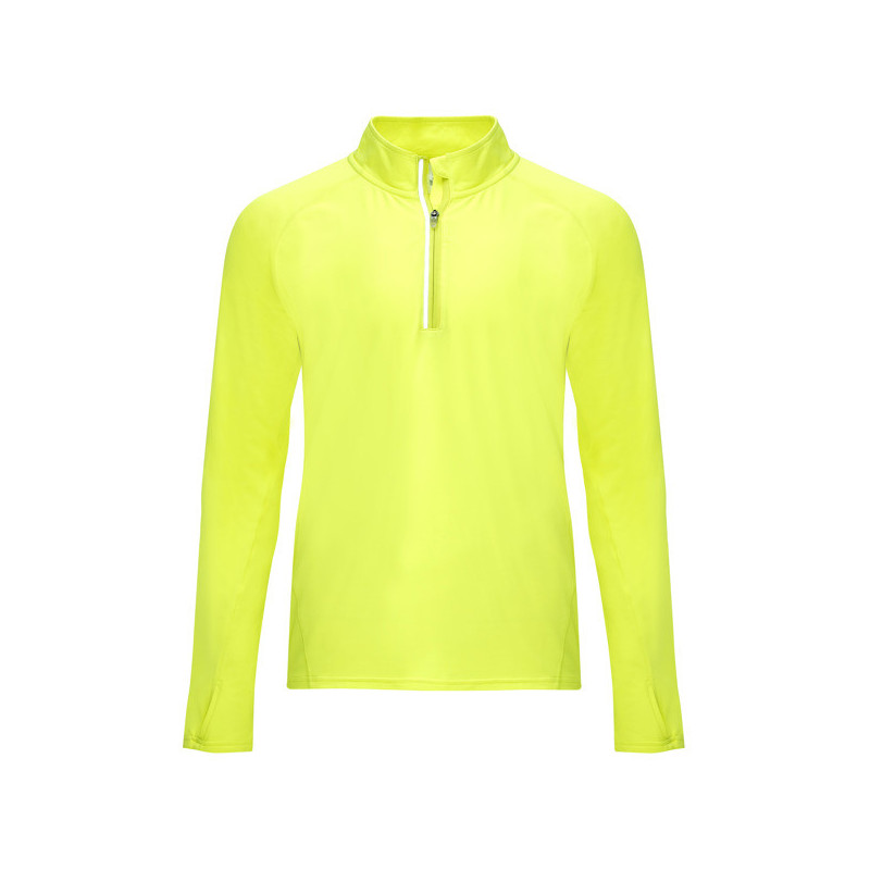 Sudadera técnica de manga larga ranglán para hombre con interior perchado. Cubrecosturas de refuerzo a contraste en el interior del cuello. Media cremallera invertida a tono con detalle reflectante. Puños con apertura para pulgar. El patronaje de la espalda es ligeramente más largo que el delantero. Detalles reflectantes en las espalda. Material: 94% poliéster/ 6% elastano, 200 g/m².
