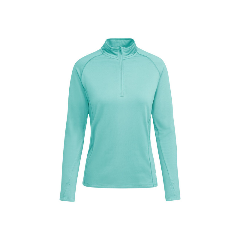 Sudadera técnica de manga larga ranglán para mujer. Interior perchado. Cubrecosturas reforzado en cuello. Media cremallera invertida a tono. Ojales en los puños para el pulgar. Costuras overlock en manga ranglán y paneles laterales. Logo Roly reflectante en panel lateral izquierdo. Material: 94% poliéster reciclado y 6% elastano, 200 g/m²