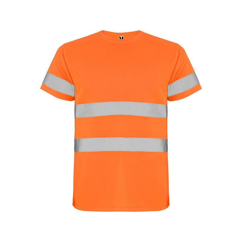 Camiseta técnica de manga corta de alta visibilidad. · Cuello redondo en el mismo tejido, con cubrecosturas reforzado en la parte interior del cuello. · Una cinta reflectante en mangas y dos en pecho y espalda. · Transpirable y fácil secado. Material: 100% poliéster bird´s eye, 130 g/m². Certificación CE según las normas: EN ISO 13688:2013/A1:2021 EN ISO 20471:2013/A1:2017. Clase I: 55221 - 55223 - 52221 - 23221. Clase II: 221 - 223 *Tejido técnico. *Alta visibilidad. *Modelo transpirable.