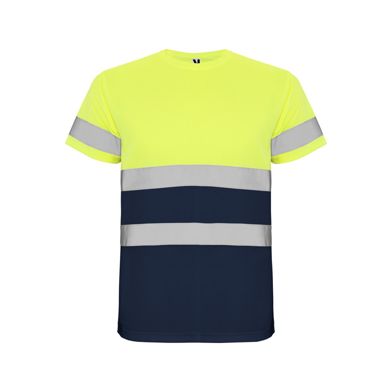 Camiseta técnica de manga corta de alta visibilidad. · Cuello redondo en el mismo tejido, con cubrecosturas reforzado en la parte interior del cuello. · Una cinta reflectante en mangas y dos en pecho y espalda. · Transpirable y fácil secado. Material: 100% poliéster bird´s eye, 130 g/m². Certificación CE según las normas: EN ISO 13688:2013/A1:2021 EN ISO 20471:2013/A1:2017. Clase I: 55221 - 55223 - 52221 - 23221. Clase II: 221 - 223 *Tejido técnico. *Alta visibilidad. *Modelo transpirable.