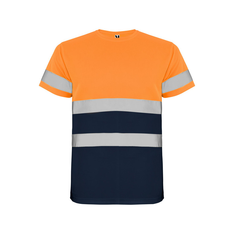 Camiseta técnica de manga corta de alta visibilidad. · Cuello redondo en el mismo tejido, con cubrecosturas reforzado en la parte interior del cuello. · Una cinta reflectante en mangas y dos en pecho y espalda. · Transpirable y fácil secado. Material: 100% poliéster bird´s eye, 130 g/m². Certificación CE según las normas: EN ISO 13688:2013/A1:2021 EN ISO 20471:2013/A1:2017. Clase I: 55221 - 55223 - 52221 - 23221. Clase II: 221 - 223 *Tejido técnico. *Alta visibilidad. *Modelo transpirable.