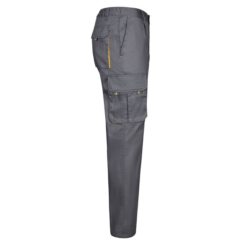 Cierre central con cremallera y botón Cintas reflectantes en el bajo de las piernas Cinturilla elástica Costura trasera de seguridad Pinzas Seis bolsillos: 2 bolsillos franceses 2 bolsillos de parche, con fuelle central, tapeta y velcro 2 bolsillos traseros de fuelle, con tapeta y velcro Sarga. Tejido flúor (amarillo): 80% poliéster - 20% algodón / 210 gr/m2 Tejido flúor (naranja): 60% algodón - 40% poliéster / 240 gr/m2 Tejido contraste: 65% poliéster - 35% algodón / 200 gr/m2 Punto liso: 100% poliéster / 185 gr/m2 Forrado Composición SARGA. TEJIDO BASE: 65% POLIÉS 200 GSM