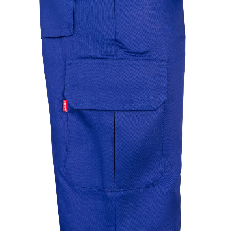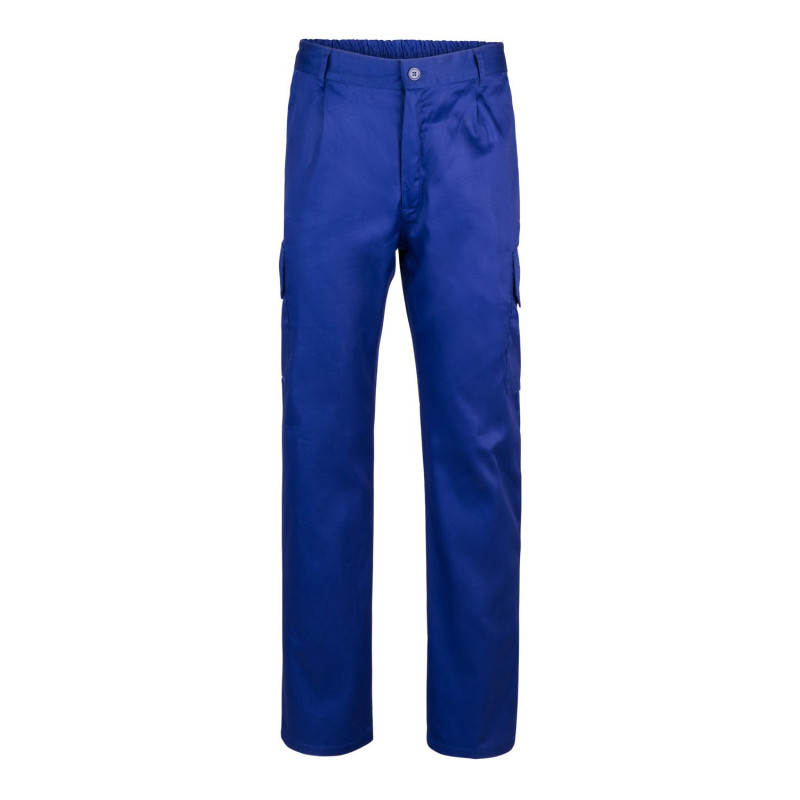 Cierre central con cremallera y botón Cintas reflectantes en el bajo de las piernas Cinturilla elástica Costura trasera de seguridad Pinzas Cinco bolsillos: 2 bolsillos franceses 2 bolsillos de parche, con tapeta y velcro 1 bolsillo trasero de parche, con tapeta y velcro Composición SARGA. 80% POLIÉST 20% ALGODÓN 190 GSM