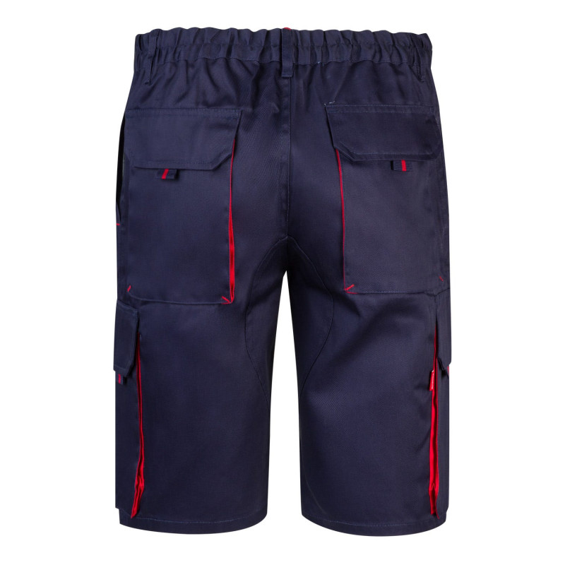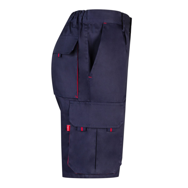 Cierre central con cremallera y botón Color de contraste en fuelles, tiradores y presillas Refuerzo de tejido trasero Cinturilla elástica Doble costura de seguridad Pinzas Seis bolsillos: 2 bolsillos franceses 2 bolsillos de fuelle, con fuelle central, tapeta, velcro y tiradores 2 bolsillos traseros de fuelle, con tapeta, velcro y tiradores Refuerzo Culera VELILLA Composición SARGA. 65% POLIÉST 35% ALGODÓN 200 GSM