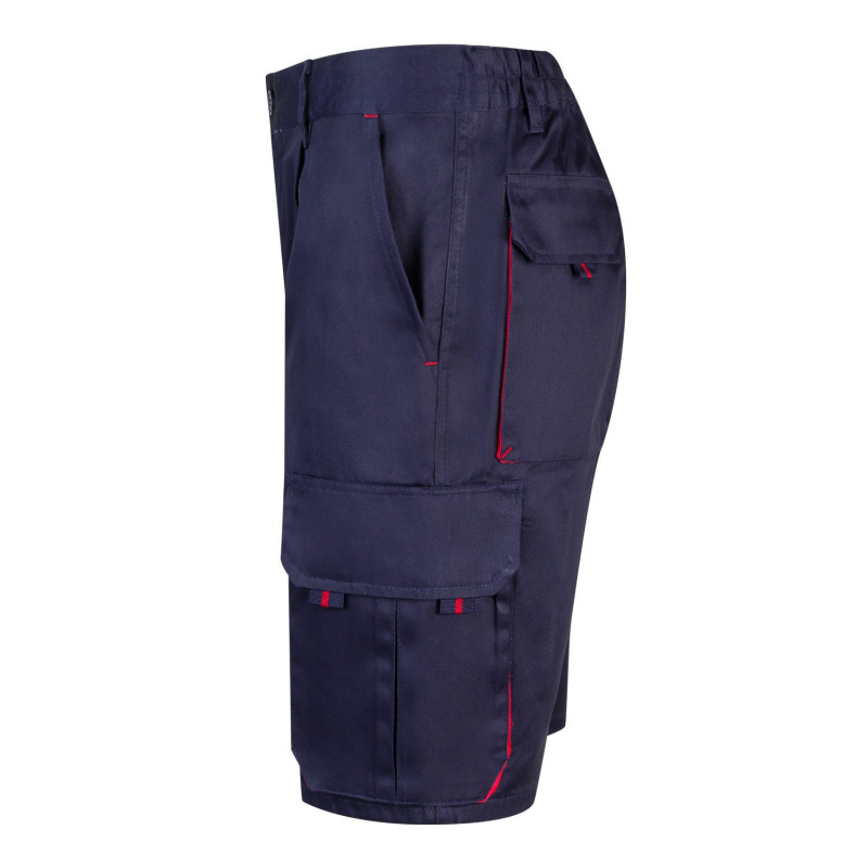 Pantalón largo laboral corte recto y tejido resistente. · Cinturilla ajustable elástica en parte trasera. · Dos bolsillos frontales. · Dos bolsillos funcionales traseros con solapa y cierre velcro. · Un bolsillo funcional lateral con solapa, cierre velcro y fuelle. · Bolsillo lateral derecho estrecho y sin solapa. · Refuerzo en entrepierna · Doble tejido en rodilleras.