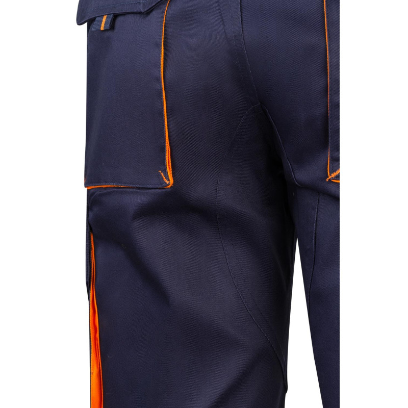 Cierre central con cremallera y botón Cintas reflectantes en el bajo de las piernas Color de contraste en fuelles, tiradores, presillas y tejido entre bandas Cinturilla elástica Doble costura de seguridad Seis bolsillos: 2 bolsillos franceses 2 bolsillos de fuelle, con doble fuelle central, tapeta, velcro y tiradores 2 bolsillos traseros de fuelle con tapeta, velcro y tiradores Sarga: 100% algodón / 240 gr/m2 Tejido flúor (amarillo): 80% poliéster - 20% algodón / 210 gr/m2 Tejido flúor (naranja): 60% algodón - 40% poliéster / 240 gr/m2 Composición SARGA. TEJIDO BASE: 100% ALGOD 240 GSM
