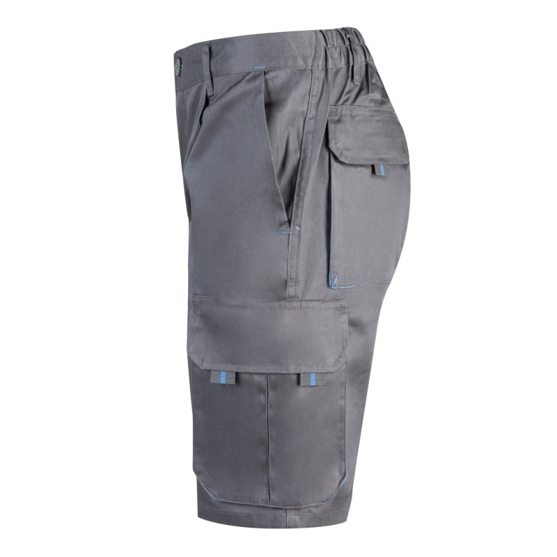 Pantalón largo laboral corte recto y tejido resistente. · Cinturilla ajustable elástica en parte trasera. · Dos bolsillos frontales. · Dos bolsillos funcionales traseros con solapa y cierre velcro. · Un bolsillo funcional lateral con solapa, cierre velcro y fuelle. · Bolsillo lateral derecho estrecho y sin solapa. · Refuerzo en entrepierna · Doble tejido en rodilleras.
