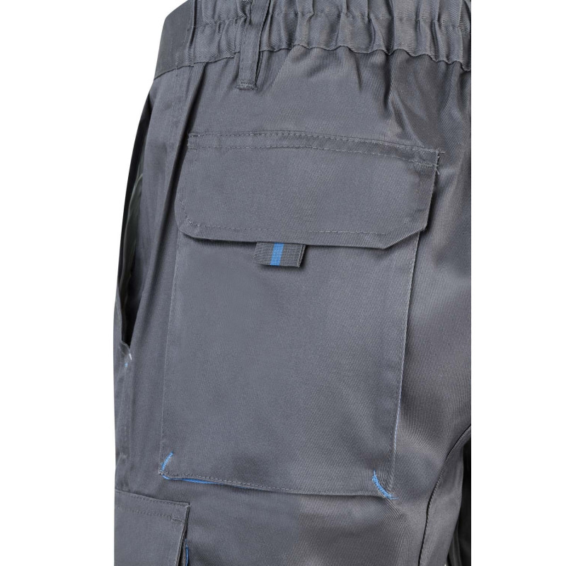 Cierre central con cremallera y botón Color de contraste en fuelles, tiradores y presillas Refuerzo de tejido trasero Cinturilla elástica Doble costura de seguridad Pinzas Seis bolsillos: 2 bolsillos franceses 2 bolsillos de fuelle, con fuelle central, tapeta, velcro y tiradores 2 bolsillos traseros de fuelle, con tapeta, velcro y tiradores Refuerzo Culera VELILLA Composición SARGA. 65% POLIÉST 35% ALGODÓN 200 GSM