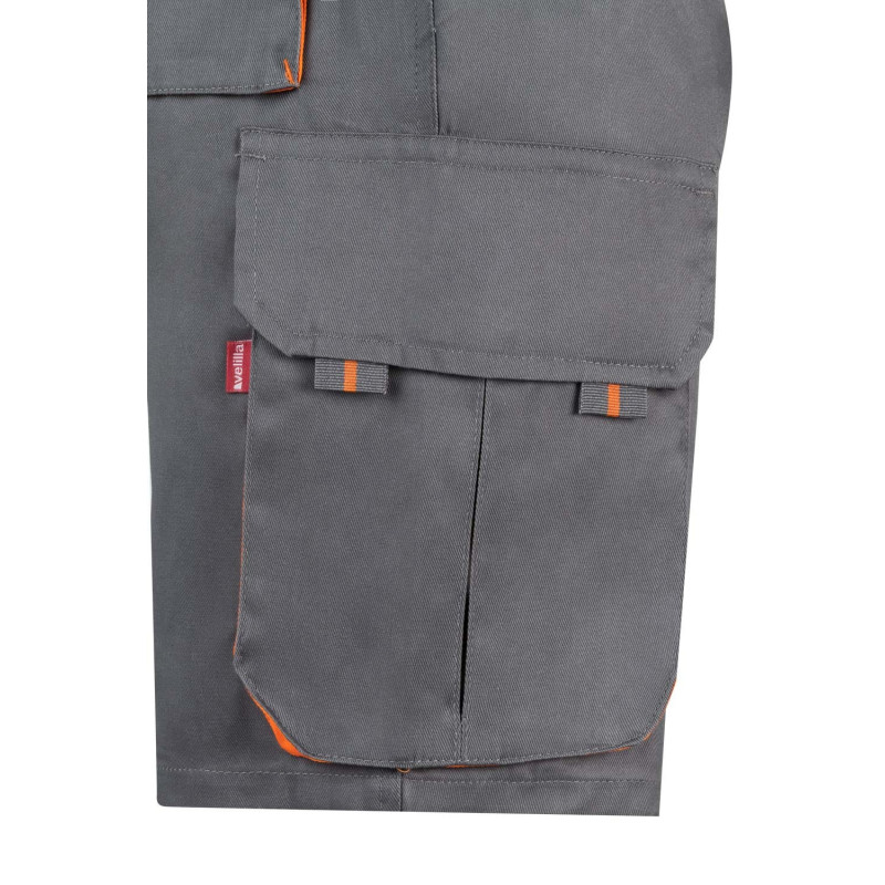Cierre central con cremallera y botón Cintas reflectantes en el bajo de las piernas Color de contraste en fuelles, tiradores, presillas y tejido entre bandas Cinturilla elástica Doble costura de seguridad Seis bolsillos: 2 bolsillos franceses 2 bolsillos de fuelle, con doble fuelle central, tapeta, velcro y tiradores 2 bolsillos traseros de fuelle con tapeta, velcro y tiradores Sarga: 100% algodón / 240 gr/m2 Tejido flúor (amarillo): 80% poliéster - 20% algodón / 210 gr/m2 Tejido flúor (naranja): 60% algodón - 40% poliéster / 240 gr/m2 Composición SARGA. TEJIDO BASE: 100% ALGOD 240 GSM